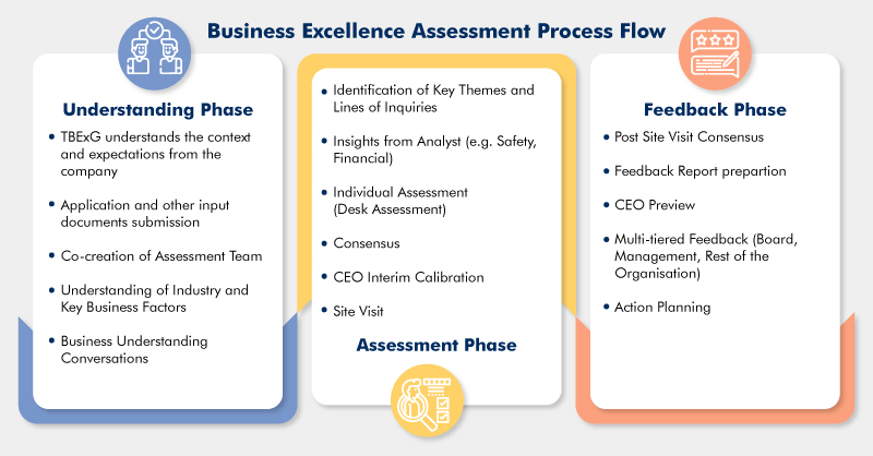 The Business Excellence Assessment Process can be imagined into three phases:
