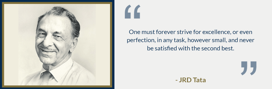 The foundation of Business Excellence movement in the Tata Group was enabled by adopting the JRD Quality Value for Performance Excellence and promoting a unified common Tata brand name. Tata Business Excellence Group (TBExG) is entrusted to build and nurture an institutionalised approach to drive the business excellence movement at the Tata group. It sets standards of excellence and partners with group companies in their journey to achieve world-class performance.