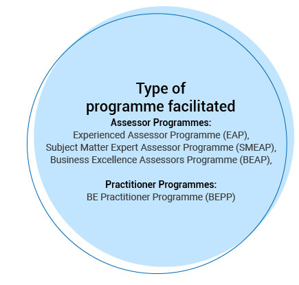 He was heading the Training function in TBExG, revamped the TBEM training programmes and brought in elements from the Baldrige Framework. He was instrumental in bringing increased business focus and results assessment focus for TBEM assessments into the assessor training programmes and introducing the Advanced Programme for Leaders, which is the apex level assessor training programme in the Tata Group.